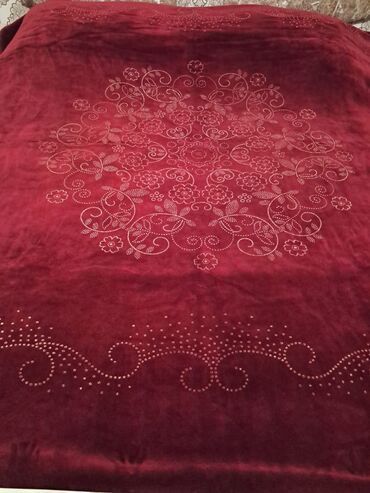 Qalın yun/plüş tipli yorğan/pled - Material: yumşaq, qalın və isti plüş/yun qarışığı (mink tipli). - Rəng: tünd bordoya yaxın fon. - Naxış: iri çiçək və yarpaq motivləri (bej, krem və açıq narıncı...