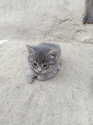 Gözəl boz rəngli balaca pişik balası - Cins: ehtimalən şotlant tipli/şinşilla görünüşlü qısa tüklü - Rəng: boz (gümüşü) çalarlar, üz və sinədə açıq krem ağ ləkələr - Gözlər: iri, dərin mavi tonlu ...