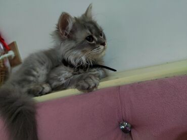 Gözəl balaca pişik balası - Yaş: körpə - Rəng: gümüşü-boz və ağ tüklər, tünd uclu quyruq - Gözlər: parlaq mavi - Quşulu, yumşaq tüklü, dairəvi sifət və kiçik qulaqlar - Ev şəraitinə uyğun, sakit t...