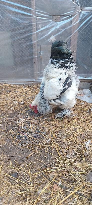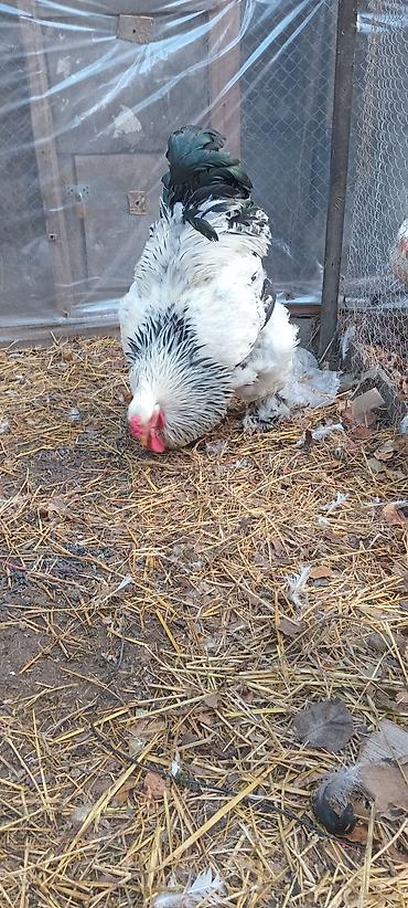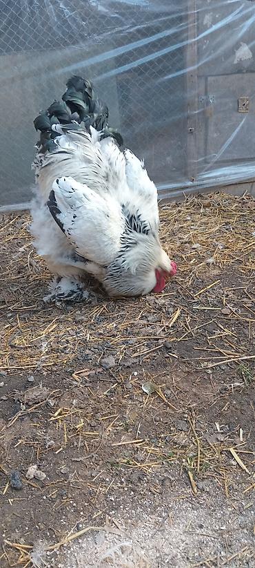 Brahma cinsli xoruz. 100 - Rəng: ağ-qara (boyun və quyruqda tünd