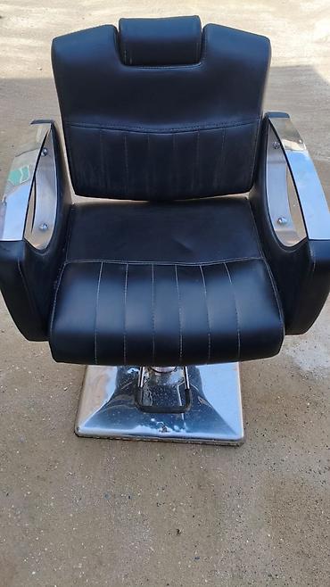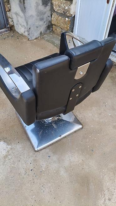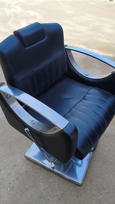Bərbər/kosmetoloji kreslo - Material: qara dəri örtük, paslanmayan