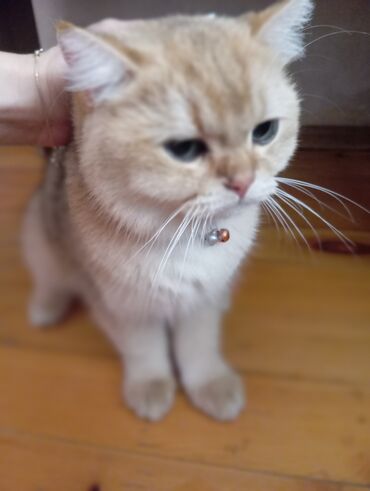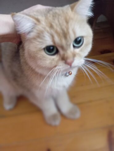 Britaniya qızılı şincilla rəngli pişik - Növ: Ev pişiyi, qısa tüklü (golden shaded/chinchilla rəngi) - Xarici görünüş: Zərif bədən quruluşu, iri yaşıl gözlər, qızılı-krem tonlarda yumşaq tüklər, q...