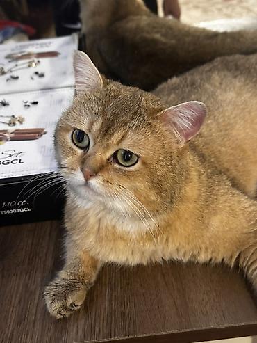 Britan qızılı kölgəli (golden shaded) pişik 2 yaşı var gözəl balaları olur - Cinsə bənzər xüsusiyyətlər: yığcam bədən quruluşu, yumru baş, iri ifadəli gözlər, kiçik qulaqlar. - Rəng: qızılı-krem t...