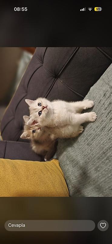 Britan pişik balaları - Cins: Britan (British Shorthair tipli) - Rənglər: gümüş “shaded/tabby” və krem-si̇yəm nöqtəli (qulaqlar, pəncələr və quyruqda tündləşmə) - Qısa, sıx və ipək kimi yumşaq tük...