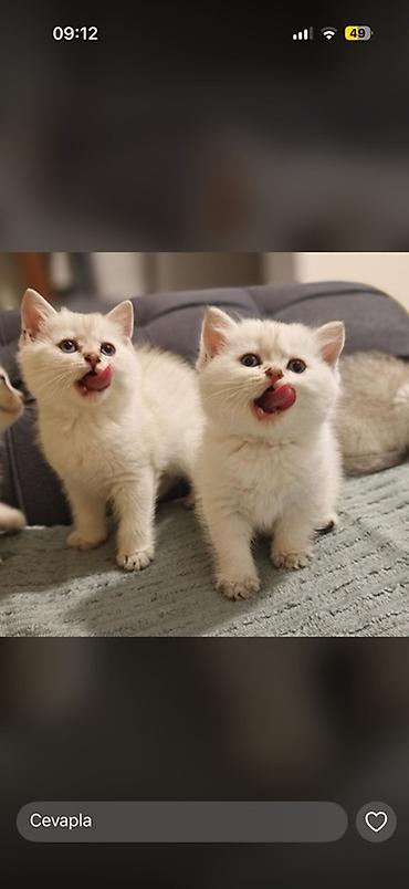 British Shorthair balaları Məhsul/təsvir: - Cins: British Shorthair - Balalar: 2 ədəd - Rəng 1: Krem-ağ, parlaq mavi gözlü - Rəng 2: Qızılı-şaded (golden shaded) naxışlı, yaşıl-boz tonlu gözlə...