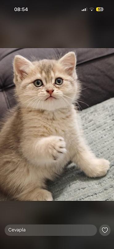 Britaniya qısa tüklü pişik – gümüş şinşilla rəngi - Cinsi: Britaniya qısa tüklü (British Shorthair tipajı) - Rəng: Gümüş şinşilla (üstü gümüş, altında krem tonları), iri yaşıl gözlər - Xüsusiyyətl...