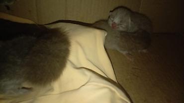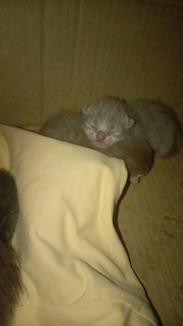 Böyük Britaniya tipli (börünç-gri rəngli) pişikdən yeni doğulmuş balalar.