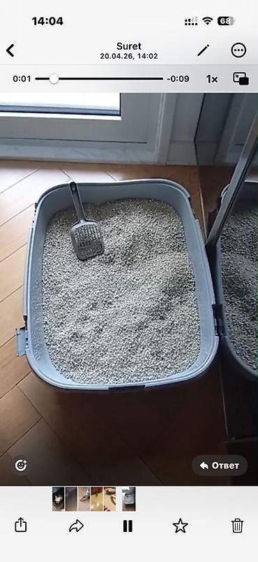 - Ev şəraitində böyüyüb, qum tualetinə öyrəşib (şəkildə qum və lopatka var)