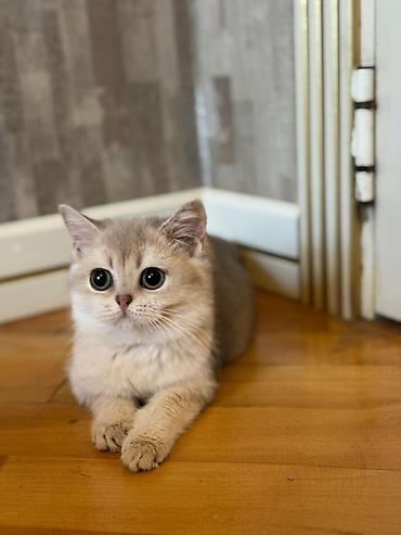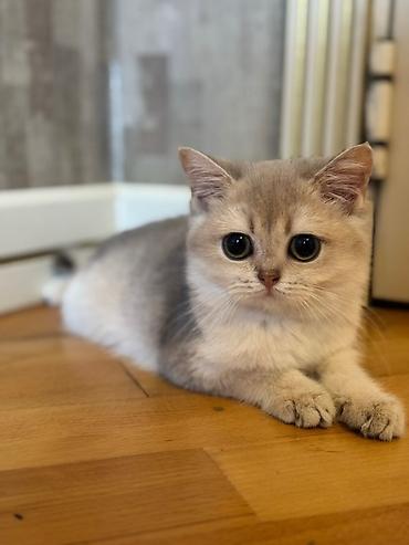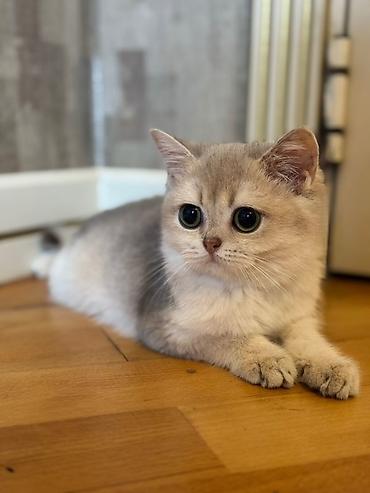 Britan pişiyi balası – gümüş-krem rəngli, böyük ifadəli gözlər, yumşaq sıx tük örtüyü. Kompakt bədən quruluşu, qısa ayaqlar, yumru üz və kiçik qulaqlar. Xasiyyəti sakit və mehribandır, ailə və mənzil həyatı üçün uyğun. Uşaqlarla və digər ev heyvanları ilə asan adaptasiya edə bilir.