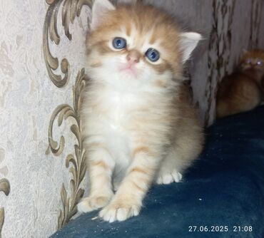 Britaniya qısatüklü (British Shorthair) tipli gözəl ev pişiyi. - Rəng: qızılı-şəbək (golden shaded), tüklər sıx və yumşaqdır - Gözlər: iri, yaşıl-mavi çalar - Quşqulaq ucları yığcam, yanaqlar dolud...