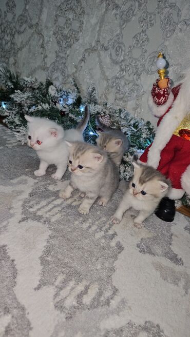 Başlıq: Britan Şorthair Pişik Balaları Təsvir: - Cins: British Shorthair - Rənglər: gümüş tabby və ağ/gümüş - Yaş: fotolarda görünən eyni bala dəsti Görünüş: - Gümüş tabby: kürək və ayaqlarda tün...