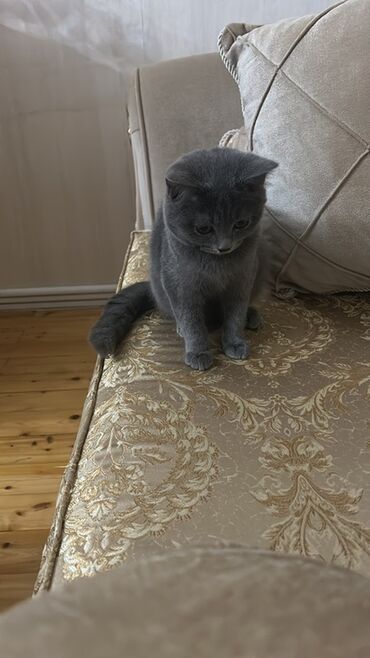 Britaniya qısa tüklü tipində, bərk-sıx “blue” (boz) rəngdə ev pişiyi. 4 aylıq pişikdir. Xüsusiyyətlər: - Yumru baş quruluşu, qısa burun, iri kəhrəba gözlər - Qalın, parlaq və sıx yün örtüyü; tüklər...