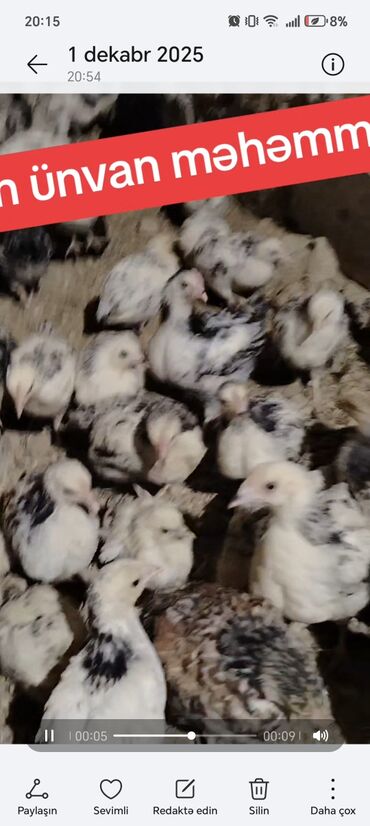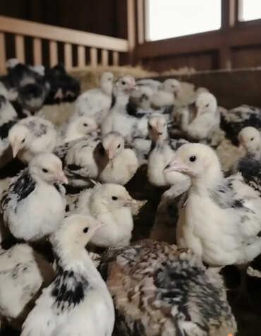 Məhsul: Cücələr / toyuq balaları (qarışıq rənglər) Təsvir: - Qrup şəkilində çoxsaylı ətlik–yumurtalıq istiqamətli cücələr. - Rənglər: ağ, ağ-qara ləkəli, həmçinin qırmızı-qonur tonlarda. - Saxlanm...