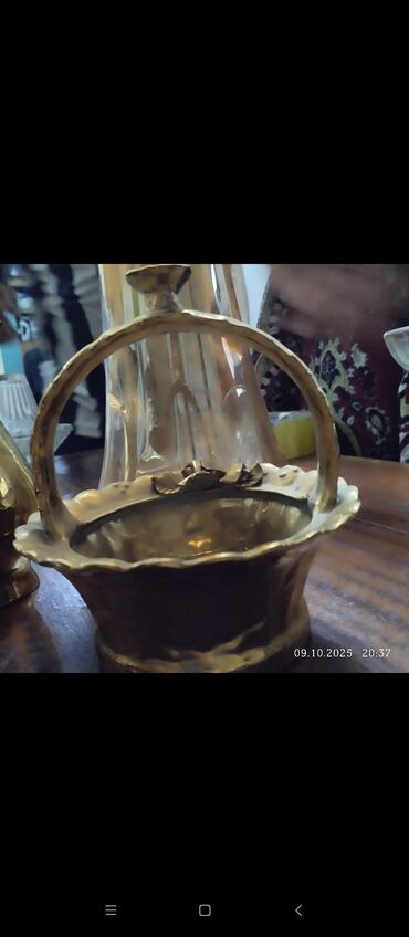 Bürünc dekorativ səbət - Material: bərk bürünc, parlaq qızılı ton -