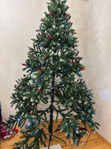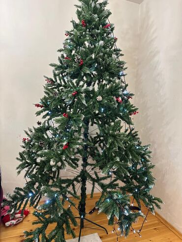 Yenidir. 480 manata alınıb, 200 manata satılır. Hər budağına bitişik qoza var, qarlıdır. O qədər gözəl və xoş görüntüsü var ki, heç oyuncaqla bəzəməyə ehtiyyac yoxdur. Onsuz da hər budağında qozal...