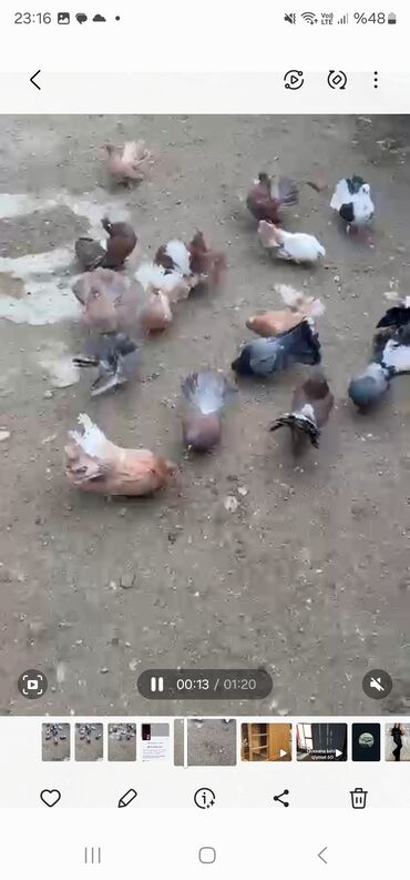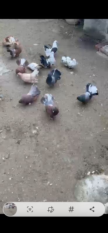 - Bir neçə rəngdə və naxışdk göyərçinləri: ağ, qara-ağ, boz, qırmızı-qəhvəyi, krem və qarışıq rənglər.