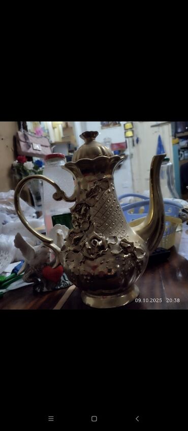 Bəzəkli metal çaydan/ibrik - Material: Metal (qızılı rəngdə parlaq
