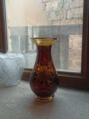 Bogem şüşəsindən hazırlanmış, qızılı rəngli, çiçək naxışlı vaza.Sovet vaxtı alınıb. Geniş ağızlı və möhkəm oturacaqlı bu vaza, ev dekorasiyası üçün uyğundur.hündürlüyü 26sm, diametri 10sm. Üzərində...
