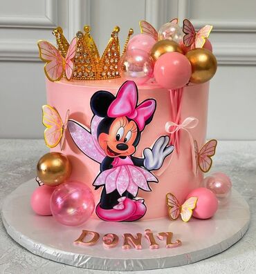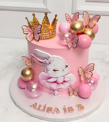 - Uşaqlar üçün tematik dizaynlar: tac və kəpənəkli çəhrayı tortlar, baletçi dovşan obrazı, məşhur cizgi obrazlı dekor