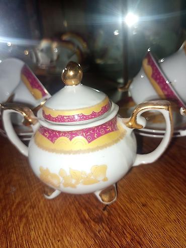 - Çaynik/şəkərqabı/südçə: qızılı qulplu və ayaqlı klassik forma, qapaqlı