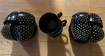Qara rəngdə, ağ xallı fincan-nəlbəki dəsti