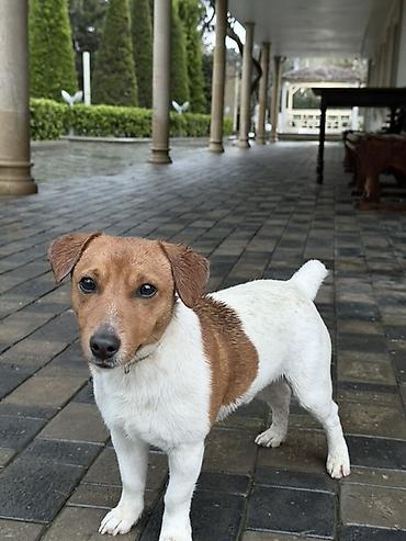 Poodle ve Jack Russell Terrier qarisigi olan ağ rəngli, xırda-orta