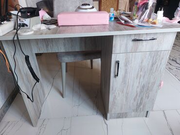 Manikür/pedikür, vizaj və digər gözəllik prosedurları üçün praktik iş stolu. Kompakt ölçülü, alət və materialların səliqəli saxlanmasına imkan verən şkaf və çekmece ilə. Ofis və ev salonu üçün uyğundur.