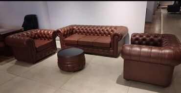 Klassik Chesterfield üslubunda divan və kreslo dəsti