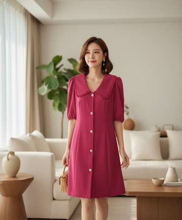 Mini38 ölçü yenidir Çəhrayı rəngdə, qısa qollu və yaxası iri olan zərif don. Donun ön hissəsində qızılı rəngdə düymələr var. Həm gündəlik , həm də xüsusi günlər üçün uyğundur.