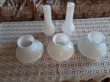 Ağ rəngdə, çiçək naxışlı şüşə lampa çətirləri dəsti. Bu çətirlər