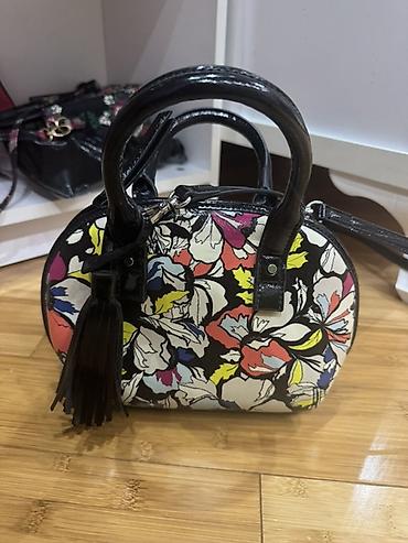 - Material: parça üzərində rəngarəng çiçək printi, laklı qara detallar