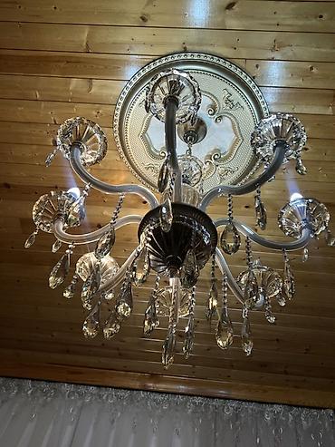 Klassik üslubda dekorativ çilçıraq 2ci əl 8şamdamlı tam yeni kimidir təcili satılır 120 alınıb 50Azna təcili satılır - Material: xrom rəngli metal korpus, şəffaf kristal/akrildən asılan damcı form...