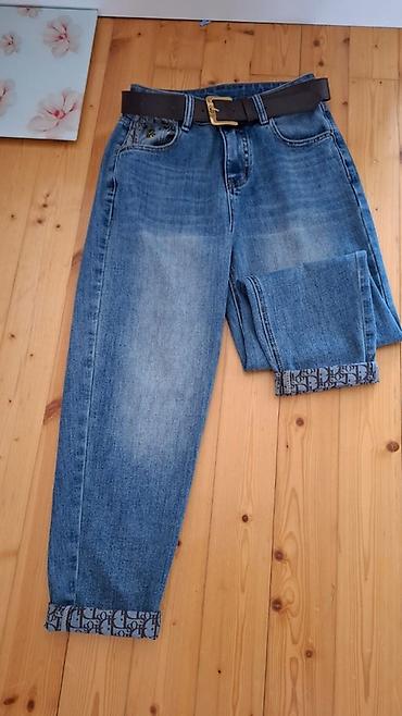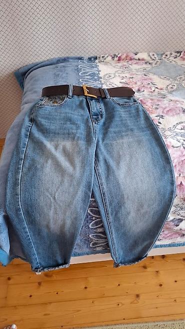 Çox az geyinilib 32 ölçü Tünd mavi rəngli cins şalvar - Klasik düz kəsim; gündəlik geyimə uyğun - Arxa tərəfdə bir ədəd paçalı cib, üzərində dekorativ tikiş i...