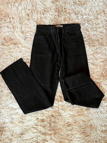 Qara denim şalvar – parıltılı daş naxışlı - Material: qalın denim - Rəng: tünd göy/qara - Bəzək: bütün səth boyunca xırda parıltılı daşlar (sprey effektli) - Kəsim: düz, geniş balaq - Bel: orta be...