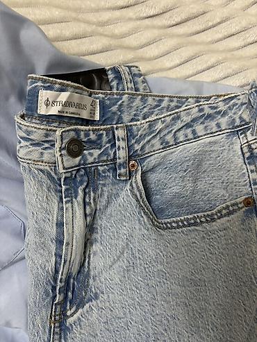 Stradivarius cins şalvar - Brend: Stradivarius - Ölçü: 32 (etiketdə göstərilib) - Model: düz kəsim, klassik “straight leg” - Rəng: orta mavi, yüngül solğun effektli (washed) - Material: sıx denim ...