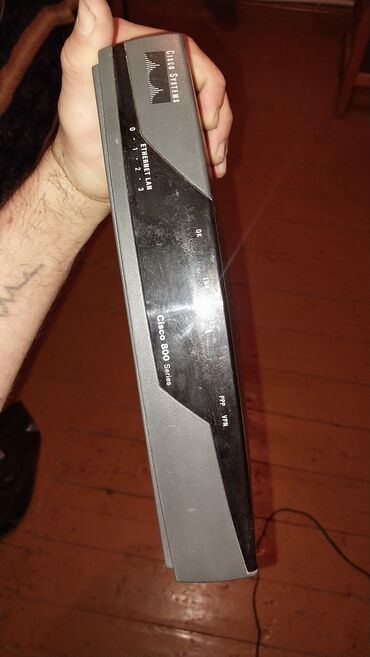 Qutuda/üstündə görünənlər: cihazın özü (Cisco 871). Tekçe şunurları yoxdu oda puldan çıxılıb artığlaması ilə.