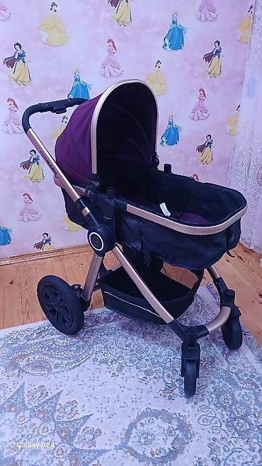 Uşaq arabası – bənövşəyi rəngdə, alüminium çərçivə Xüsusiyyətlər: - Transformasiya olunan beşik/oturacaq bloku: körpə üçün layla tipli dərin beşik kimi və daha böyük uşaq üçün oturacaq kimi istifa...
