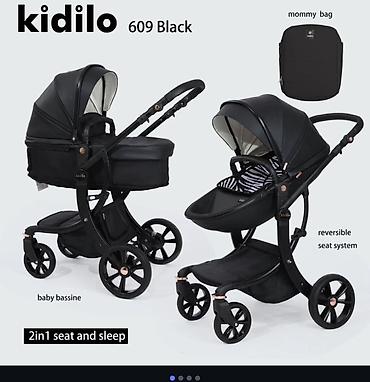 Kidilo 609 Black uşaq arabası – 2‑si 1-də (yuxu beşiyi + oturacaq)