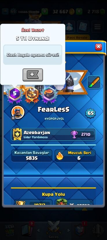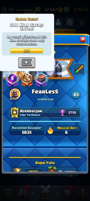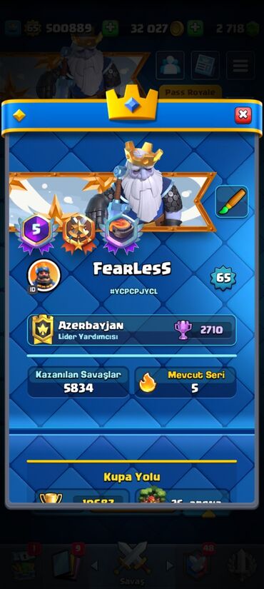 Clash Royale hesabı – FearLess - Kral səviyyəsi: 65 - Klan statusu
