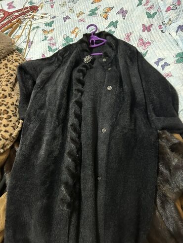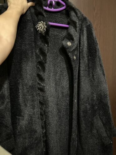- Qara paltok/plaş tipli üst geyimi: yumşaq, tüklü tekstura, ön hissədə dekorativ xəz bəzək zolağı, bəzək sancağı (broş), düyməli bağlanma, iki yan cib. Asqı ilə təqdim olunur.
