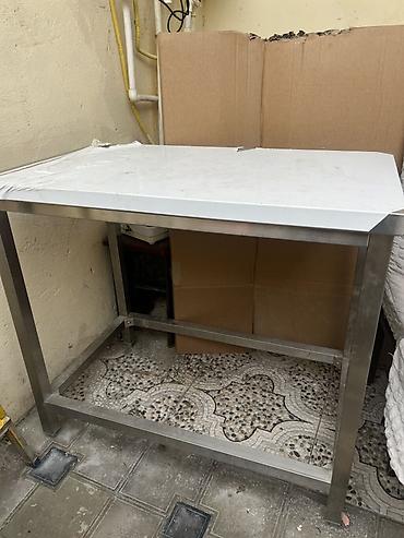 - Paslanmayan polad iş masası: Geniş iş səthi, alt hissədə möhkəmləndirici çərçivə, istehsalat mətbəxləri üçün dayanıqlı konstruksiya.
