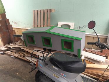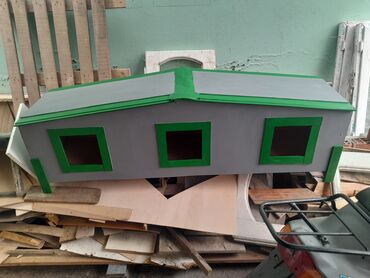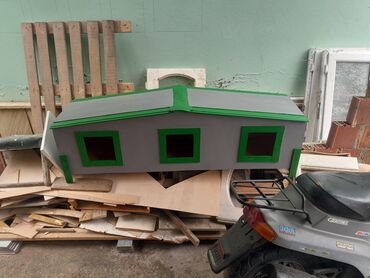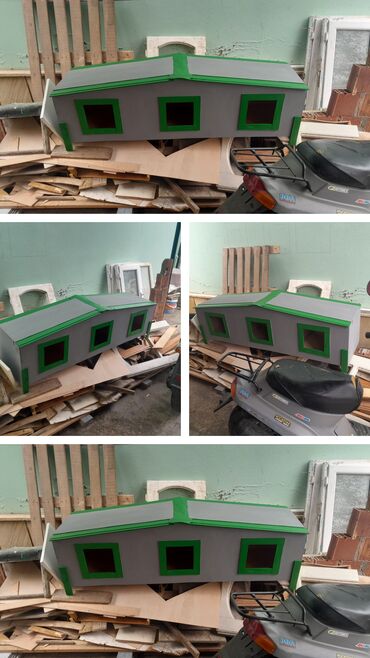 Taxta it evi - Material: təbii ağac (taxta panellər), möhkəm karkas. - Dam: ikitərəfli maili konstruksiya, şifer tipli/bitum örtüklə hava-su keçirməz qoruma. - Dizayn: klassik “evcik” forması;...