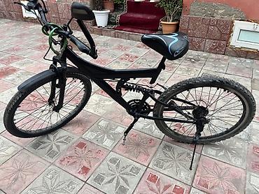 Dağ/şosse tərzində velosiped - Rəng: qara - Gediş rahatlığı üçün ön amortizator və arxa mərkəzi amortizator (tam asqı) - Təkərlər: 26" dişli off-road şinlər, sıx spikli alüminium halqalar - Bremza...