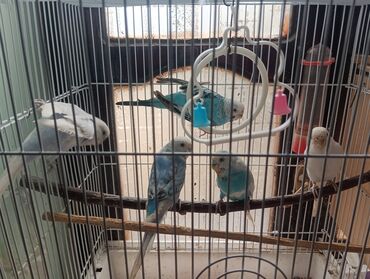 - Şəkillərdə görünənlər: bir neçə tutuquşu, içliklər və aksessuarları ilə birlikdə qəfəs.