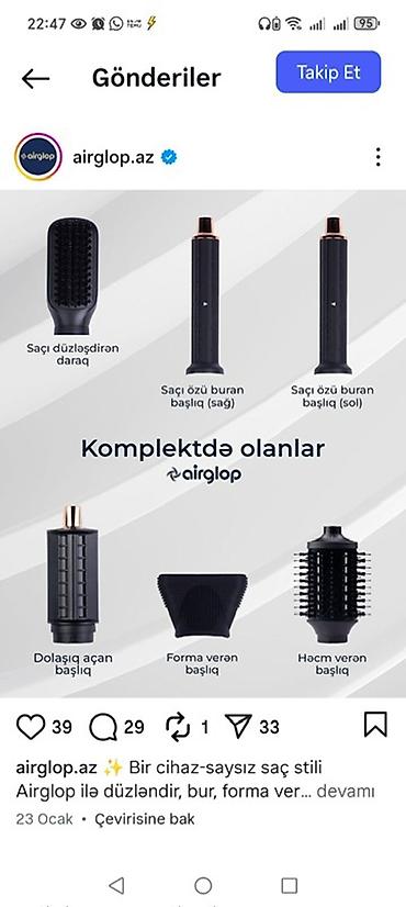 Sadecə darağı yoxdur, əlimlədə işarələmişəm TP-5+1 Hot Air Styler – 5-də 1 saç formalaşdırıcı set Qutu məzmunu: - Güclü əsas motor bloku, sürət/istilik seçimli slayder düyməsi - 2 ədəd avtomatik...