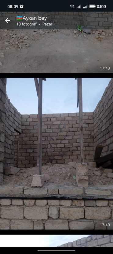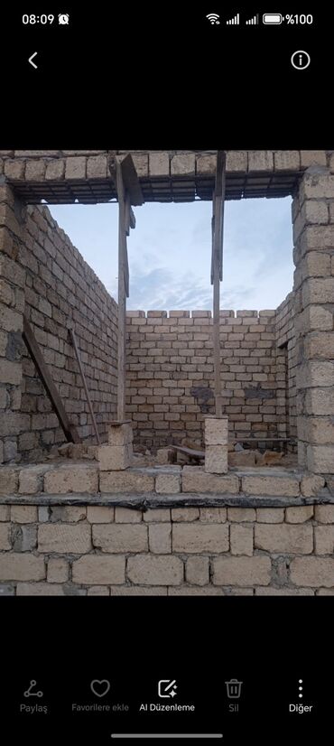 - İç plan: bir neçə otağa bölünmə üçün ara divarlar hörülüb; dəhliz zonası görünür.