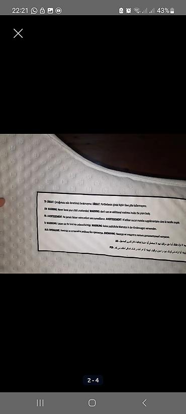 - Təhlükəsizlik qeydləri üzərində: uşağı nəzarətsiz qoymamaq, içəridə əlavə döşək istifadə etməmək barədə xəbərdarlıqlar