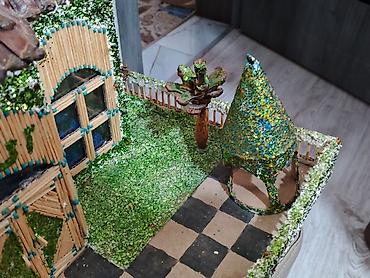 Əl işi dekorativ kompozisiya – rəngarəng çubuqlardan hazırlanmış “hasarlı” mini bağ kompozisiyası. Xüsusiyyətlər: - S-şəkilli əsas: süni yaşıl örtük üzərində dekorativ səkilər və parıltılı lentlə ...