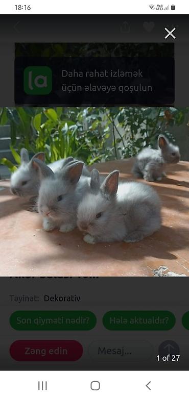 Mini dovşan balaları . 2 ədəd Albinos var biri Erkey biri dişi 6 ədəd yerli sortdu ağların ədədi 15 bozdar isə ədədi 10 alıb satan deyiləm nədəki alverçi yigmasin öz qapının fidanlarının bala...