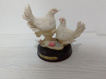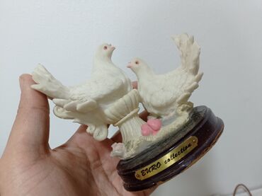 Dekorativ heykəl və vaza dəsti - Heykəl: İki göyərçin fiqurundan ibarət dekor. Təbii ağac gövdəsi və qayalıq teksturlu baza üzərində işlənib. Qanad və lələk detalları incə boyama ilə vurğulanıb. D...